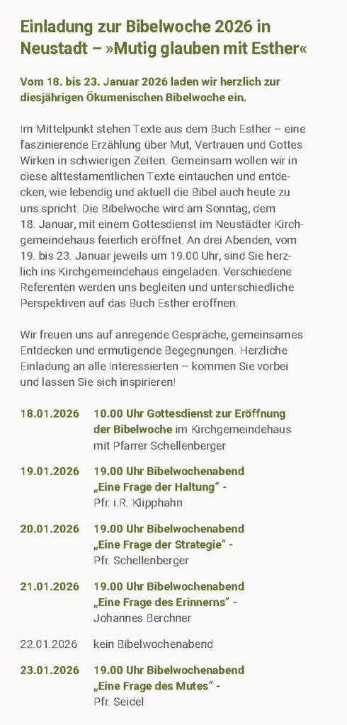 Sie finden hier Informationen über das Leben unserer Kirchgemeinde.